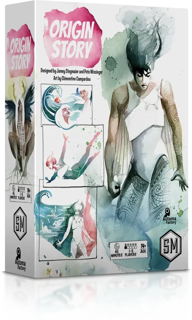 Origin Story is a 1-5 player competitive tableau-building, trick-taking game played over 5 rounds. Each round represents a chapter in your development and grants a new card to add to your player mat. Charge your cards and use their abilities to score more points than your opponents.