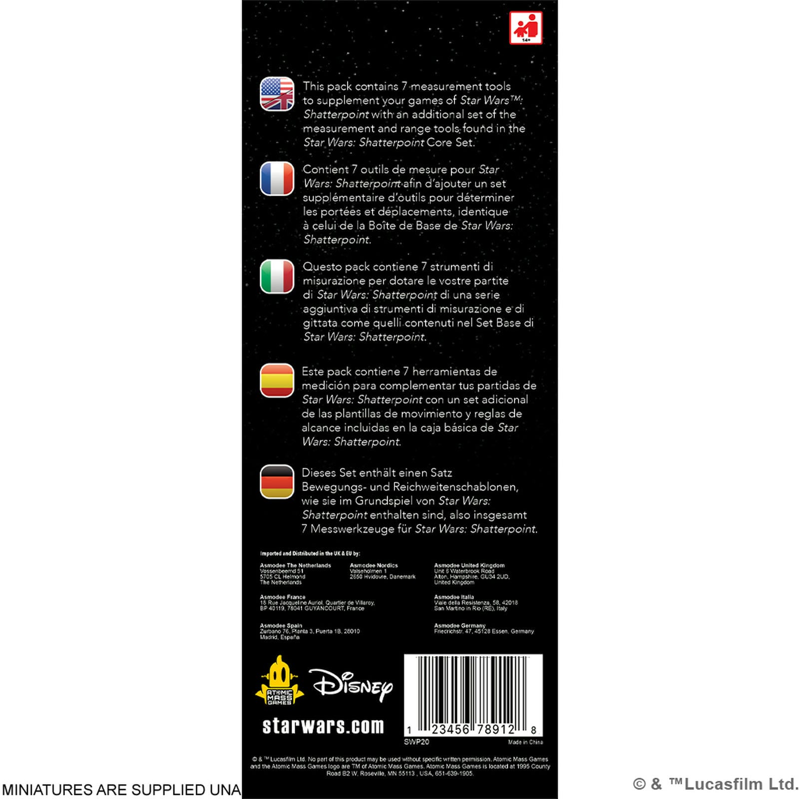 This pack contains four range tools and three movement tools for player to supplement their games of Star Wars: Shatterpoint with more of the range and movement tools found the Core set.