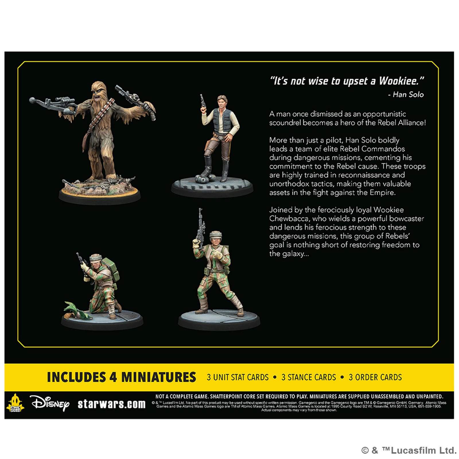 The scoundrel with a heart of gold becomes a hero of the Rebel Alliance! Han Solo and steadfast and ferocious Chewbacca lead an elite team of Rebel Commandos. These troops are highly trained in reconnaissance and unorthodox tactics, making them valuable assets in the fight for freedom from the Empire's tyranny.